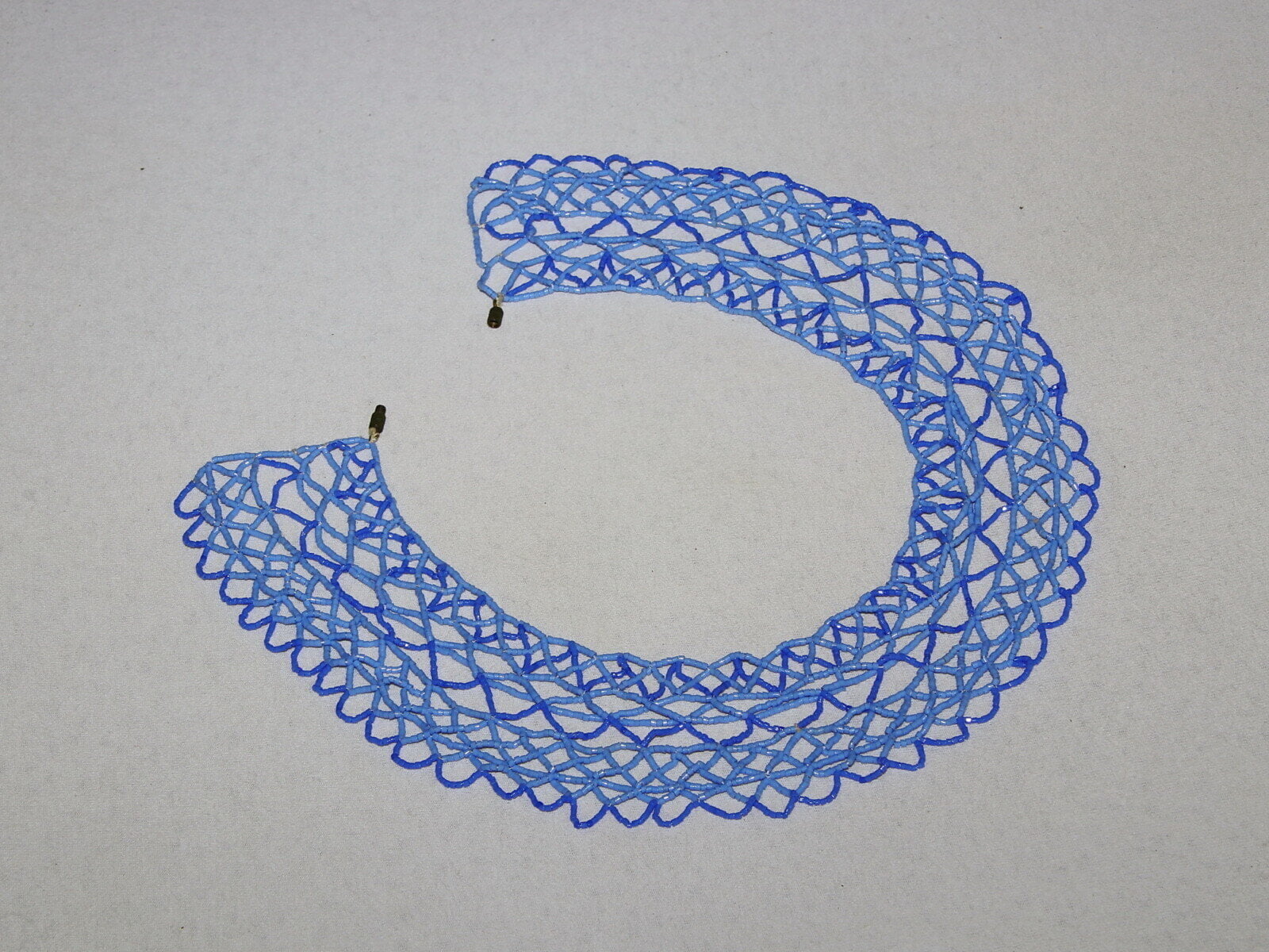 | Opis snovi | Steklene sekane koraldice Bela bombažna nit Medeninasta zaponka na navoj |