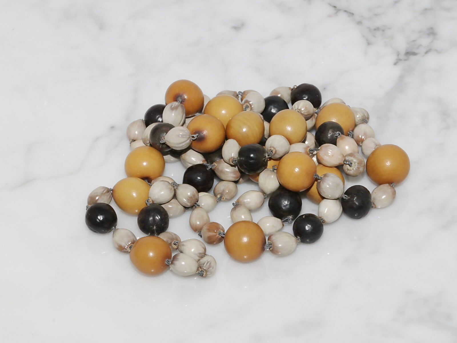| Tehnika izdelave | Ročno vrtanje, spajanje s kovinskimi zankami, lakiranje |