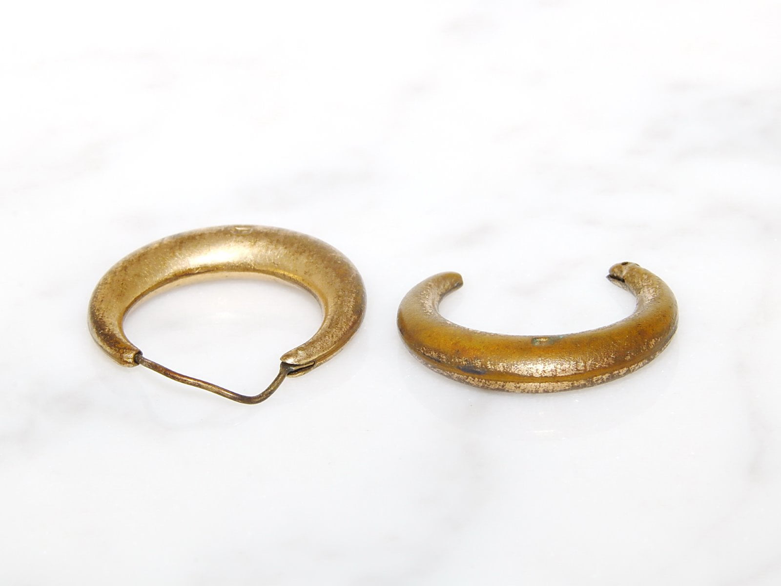 | Ohranjenost, stanje | Slaba, en uhan nima obešala, pozlata je zelo oguljena |